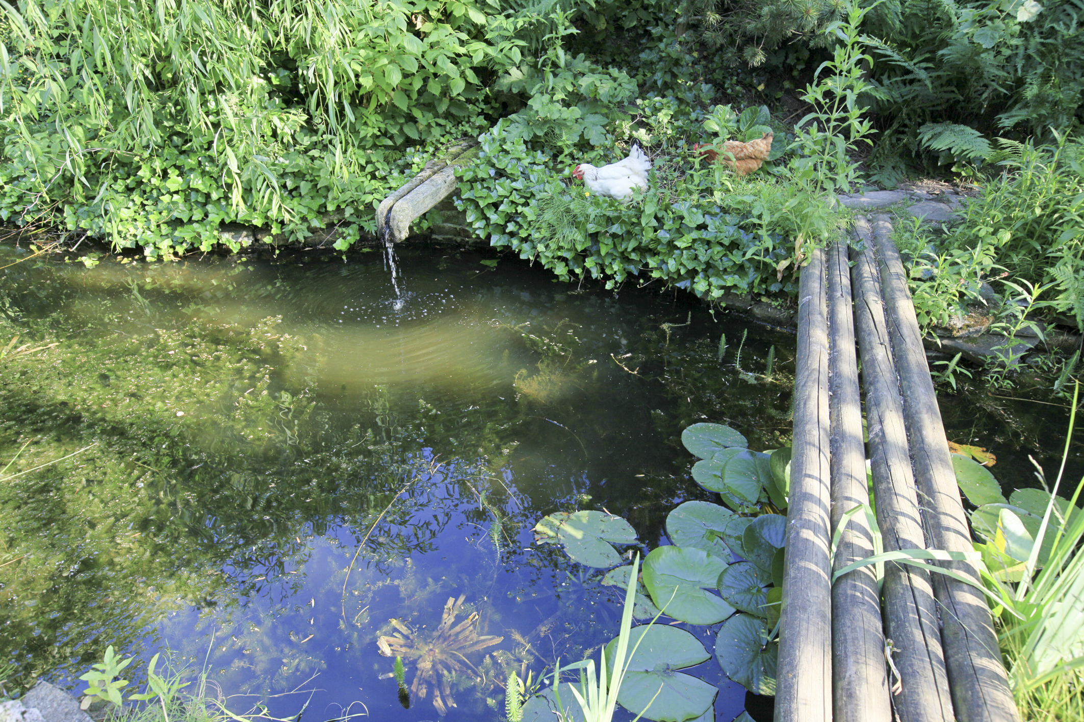 This classic 1940s town garden, with its horizontal lawn and rose beds, was reworked by the owner to introduce a dash of ‘mystery’ and make it more welcoming to wildlife while retaining its large magnolia tree and schist paths. An altered landscape, home to strange sculptures, a fountain, a large pond fed by a stream that collects the overflow from the cistern, and with walls concealed by a mixture of native plants and exotic curiosities, home to countless insects and birds. A feast for eyes and ears as well as for nose and palate, a place in which to unwind and reconnect with nature.