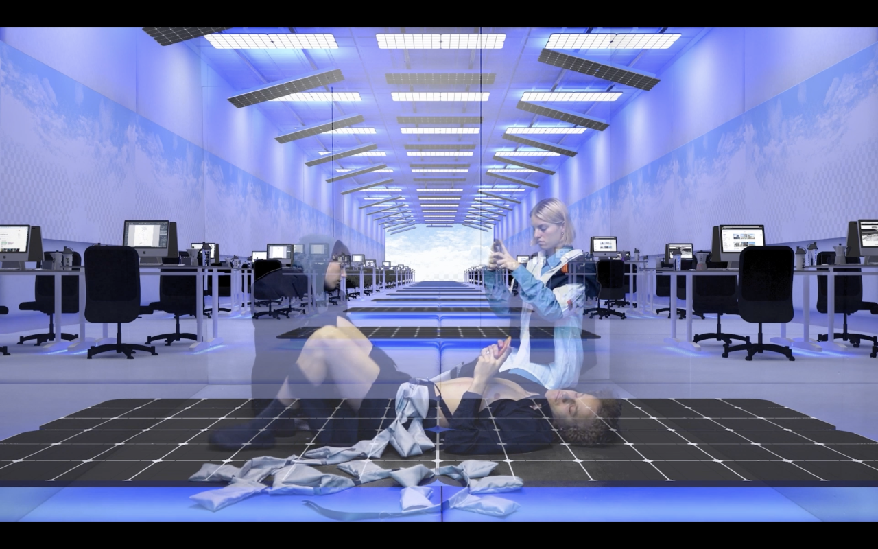 Et tandis que nos mannequins s’assoupissent dans des pays de rêves voxels, ils s’accrochent à leurs écrans, qui diffusent une coulée neigeuse de tutoriels, de vidéos et d’apparitions d’invités pour vous, chers spectateurs. Ils s’occupent des avocats, règlent les lumières, se laissent aller aux voix tendres de vieilles et douces cérémonies, rayonnant au présent, mais rêvant au-delà. Rejoindrez-vous les SLEEPERS/DREAMERS, qui diffusent notre lente capitulation face aux obsessions, aux peurs, aux espoirs et aux secrets qui accompagnent la vie et le travail dans une culture caféinée imprégnée de « duck-faces » ?