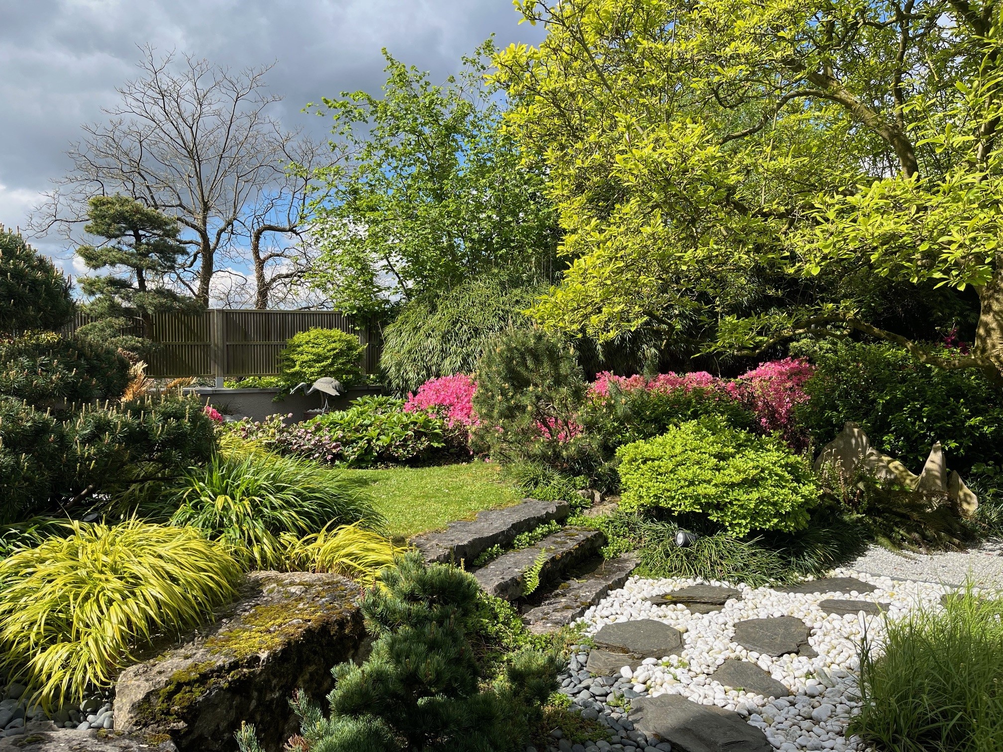 Ce jardin, créé par Manuel Schneider, se visite lentement. À chaque pas apparaît une nouvelle surprise : un détail d’un soin extrême ou un élément amusant, une terrasse qui se prolonge en cascade ou des rochers finement choisis… Tout y est savamment pensé. Un régal de tous les instants !