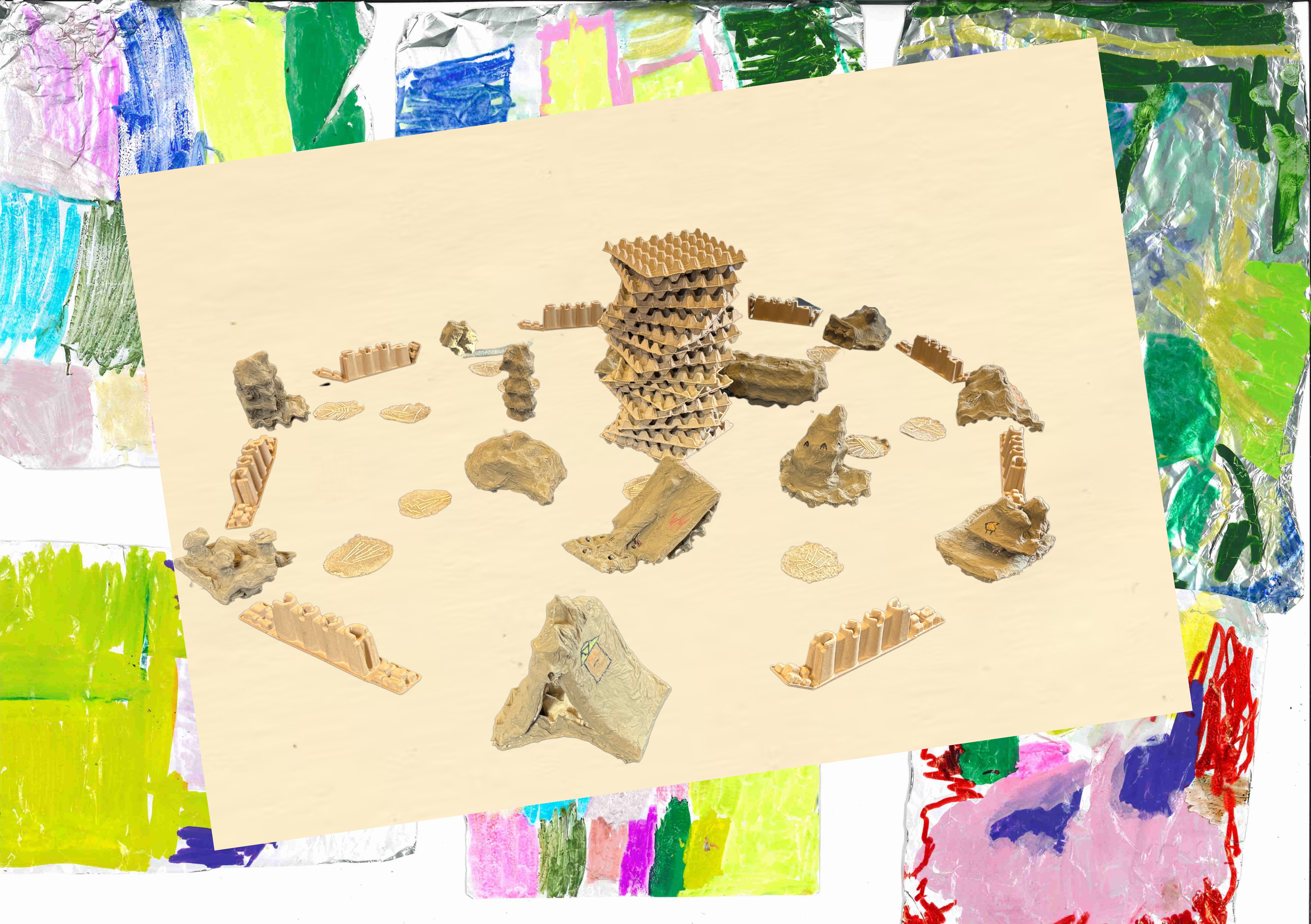 Nous nous laissons surprendre par ce que nous rencontrons dans notre environnement. Nous partons à la découverte. Avec nos yeux, mais aussi avec nos oreilles, notre nez et nos mains. Puis nous commençons à dessiner, à peindre, à construire. Nous créons un environnement dans lequel nous offrons une place à toutes les impressions que nous avons recueillies.