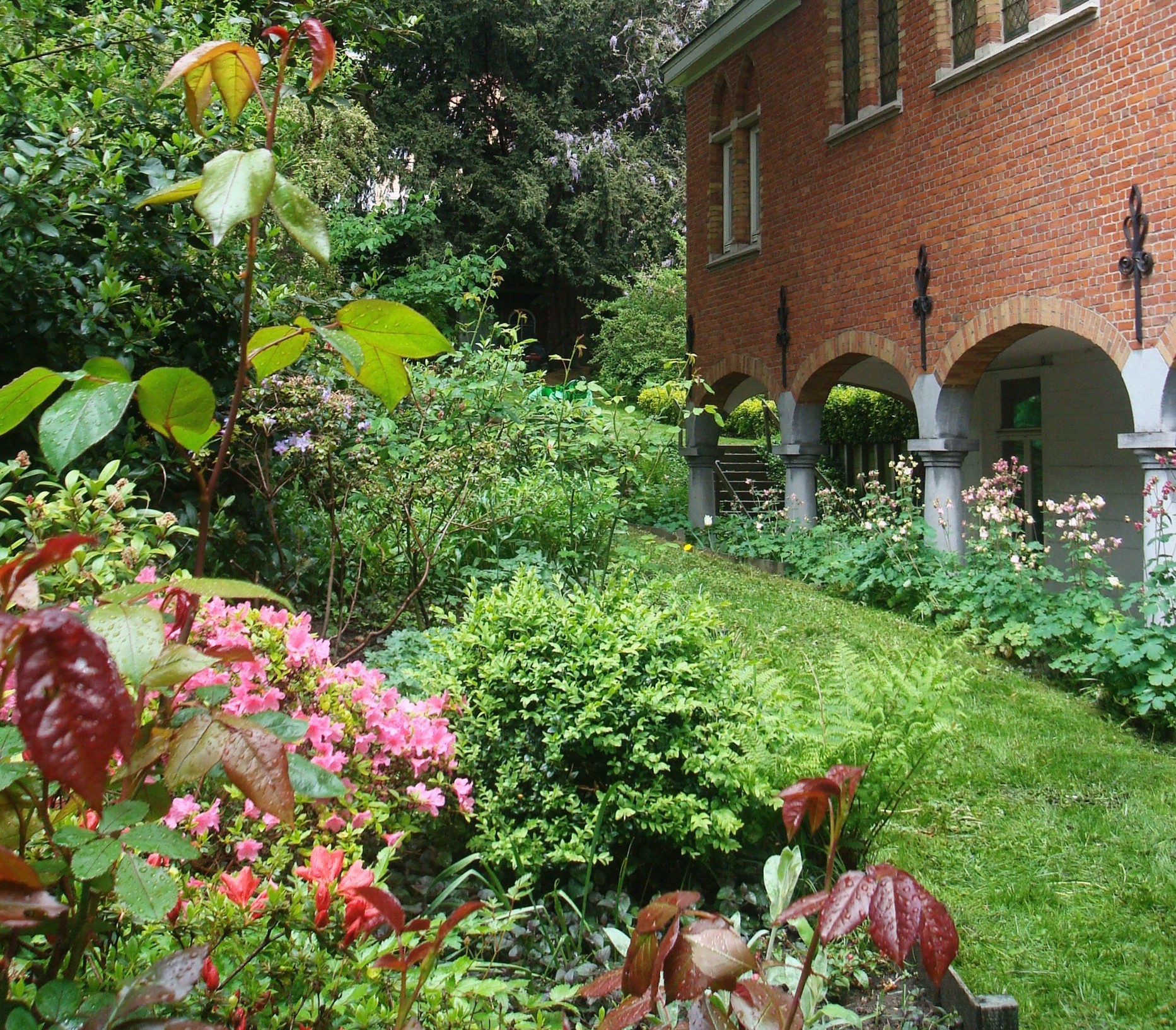 De tuin met de grote beschermde bomen (zowat de enige in de wijk), de neogotische kapel en de moestuin worden al jaren verzorgd door zuster Pauwels. Vandaag is het de STIC die de steile kanten van de Maalbeekvallei in toom houdt met een spel van hellende grasvelden en bloemenperken, in bedwang gehouden met houten muurtjes.