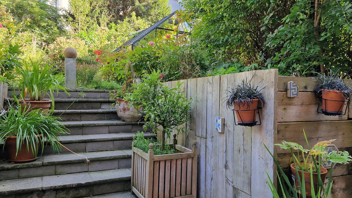 In 1933 bouwde de familie Warnimont een opbrengsteigendom op voormalige landbouwgrond naast het landgoed Mon Plaisir, dat in 1907 was onteigend om plaats te maken voor de huidige stationsomgeving van Schaarbeek. De siertuin die de huurders destijds deelden, raakte geleidelijk aan in onbruik en werd uiteindelijk rond 1996 omgevormd tot een uitgestrekt grasperk. In 2019 werd een project opgestart om de biodiversiteit te herstellen en van een deel van de tuin opnieuw een voedseltuin te maken. Een serre, moestuin en andere voorzieningen willen deze omgeving nieuw leven inblazen en een duurzaam ecosysteem ondersteunen waarbij de menselijke tussenkomst tot een minimum wordt beperkt.
